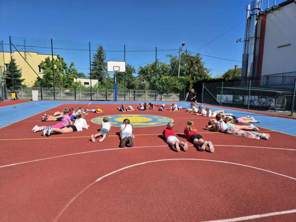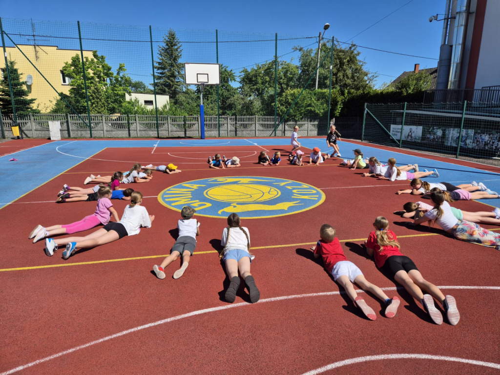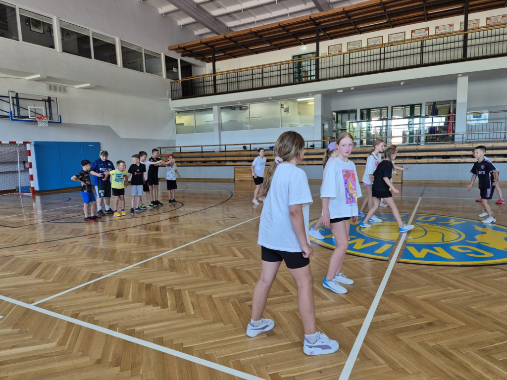 Z nami pierwsza tura zajęć „ Z nami nuda się nie uda”, która podzielona była na dwa tygodnie. Zajęcia odbywały się w pierwsze dwa tygodnie wakacji od poniedziałku do piątku w godzinach od 9:00-13:00. Dwutygodniowy cykl stanowił intensywny i radosny początek wakacji, który spotkał się z dużym zainteresowaniem uczestników i ich rodzin. Łącznie w zajęciach wzięło udział 90 dzieci, którzy pod czujnym okiem instruktorek – Pani Eli Panek, Pani Zuzanny Leśniak i Pani Moniki Stwory – rozwijali swoje sportowe pasje.