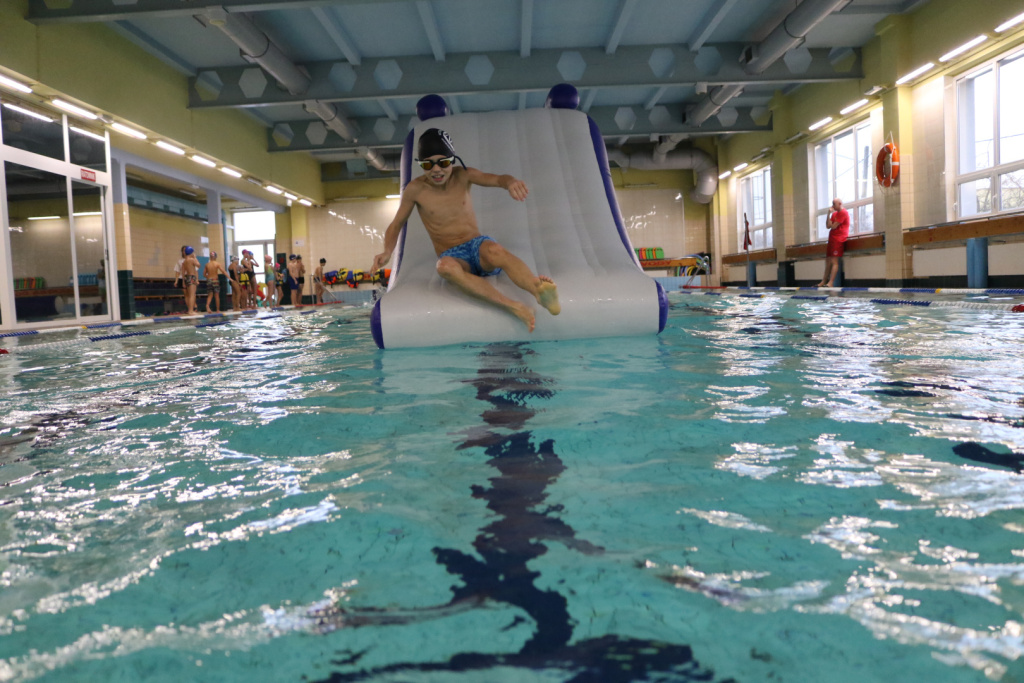 W niedzielę, 15 grudnia 2024 roku, pływalnia Centrum Sportowo-Widowiskowego w Kozach zamieniła się w arenę pełną wodnych emocji. Odbyły się tam zawody na wodnym torze przeszkód, w których udział wzięły zarówno dzieci, jak i rodzice.